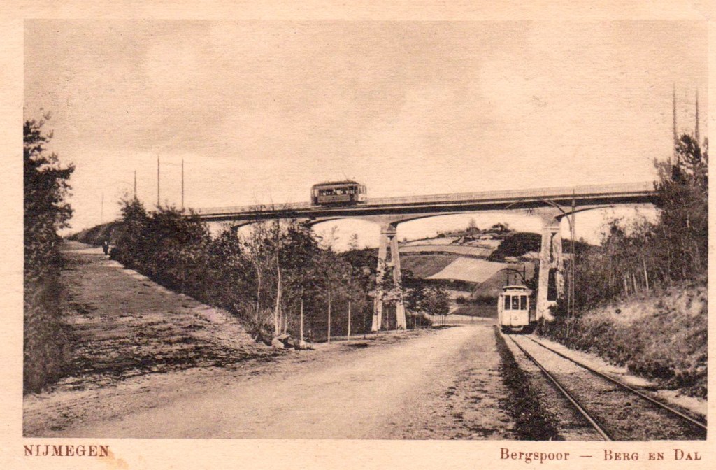 Op die tekening is de Nijmeegse tramlijn 2 te zien, ook wel “het bergspoor” genoemd. Van Genk toonde waar die bijnaam vandaan kwam: tussen 1912 en 1955 liep de lijn van het centrum van de stad naar het naburig Berg en Dal, via een voor Nederlandse begrippen behoorlijk heuvelachtig terrein. De tekening beeldt twee trams af op en bij het viaduct over de Van Randwijckweg tussen Beek en Berg en Dal. Dit was een geliefd plaatje in toeristische gidsen en op prentbriefkaarten, zodat aangenomen mag worden dat Van Genk de scène ook van foto’s kende.
