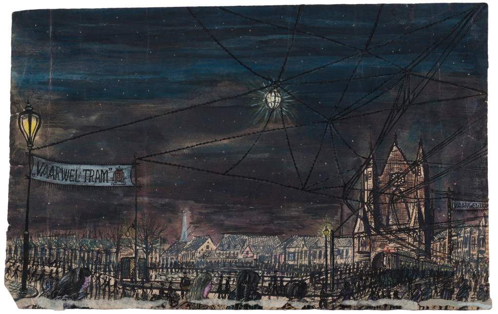 Vaarwel tram | ca. 1957 | gemengde techniek op papier | afmetingen onbekend | Museum Dr. Guislain, Gent