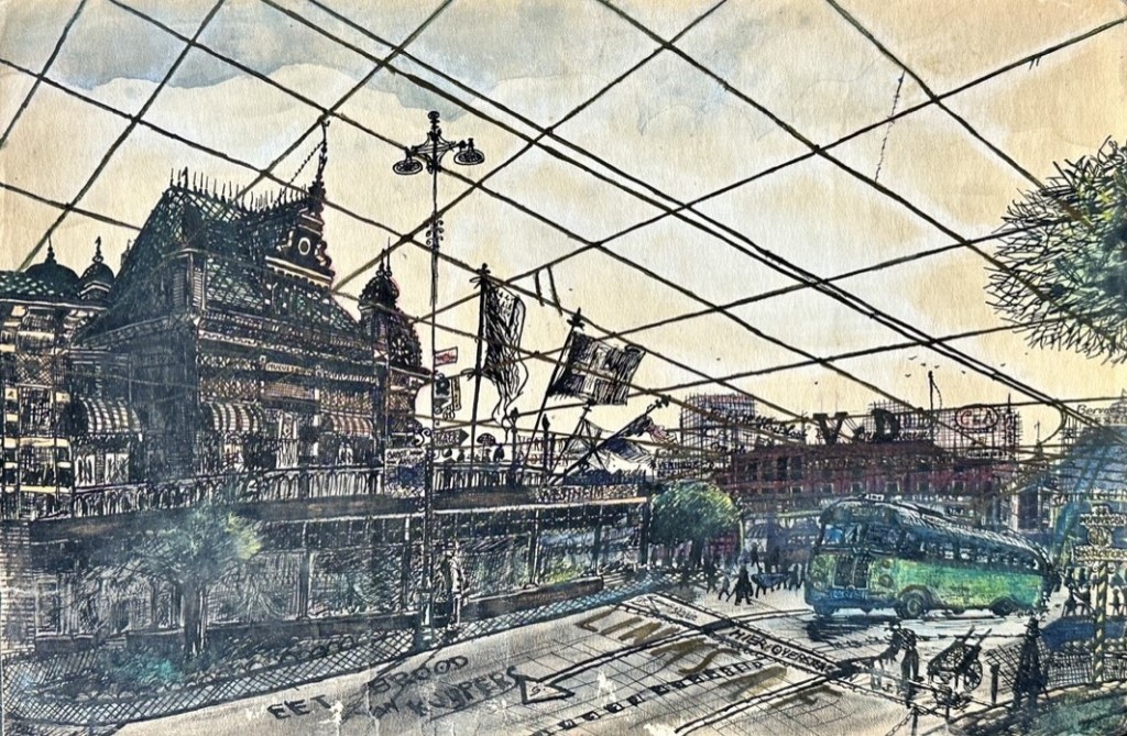 Leidseplein, Amsterdam | ca. 1950 | gemengde techniek op papier | ca. 23 x 35,5 cm